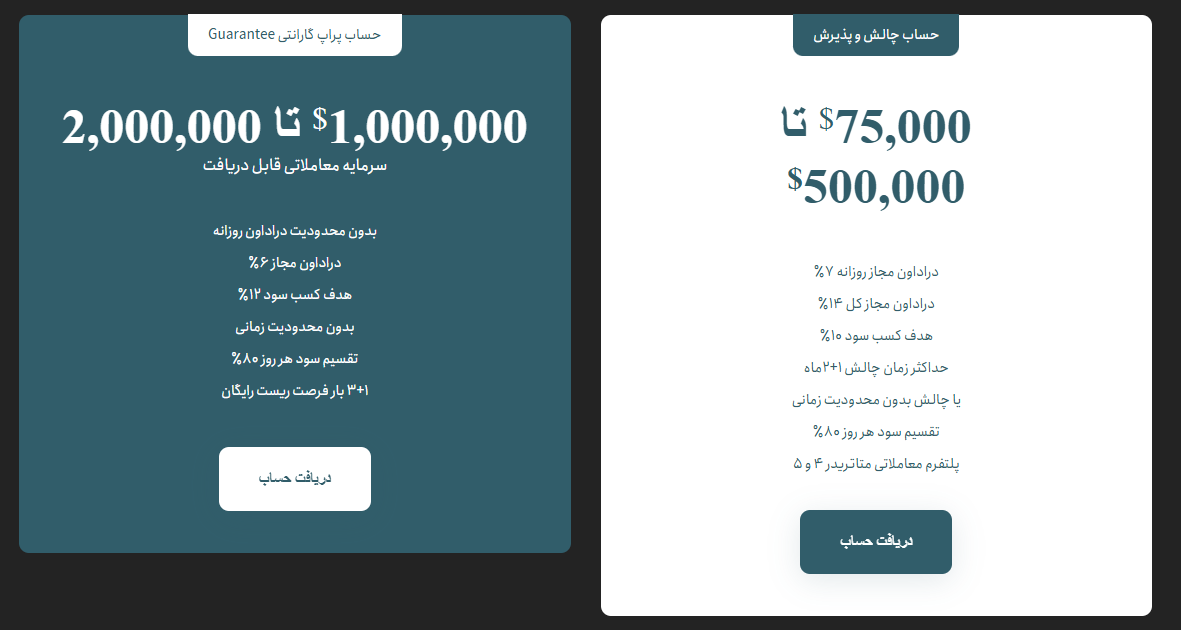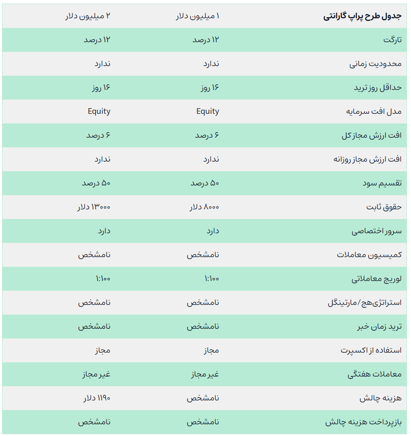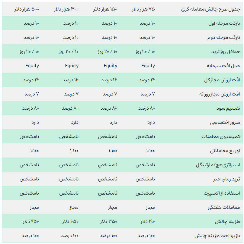 هر کدام از این طرحها با توجه به سرمایه اولیه، میزان سود و ضرر مجاز، تقسیم سود و دیگر معیارهای مهم، گزینههای مختلفی را برای معاملهگران فراهم میکنند که در ادامه به بررسی آنها میپردازیم.